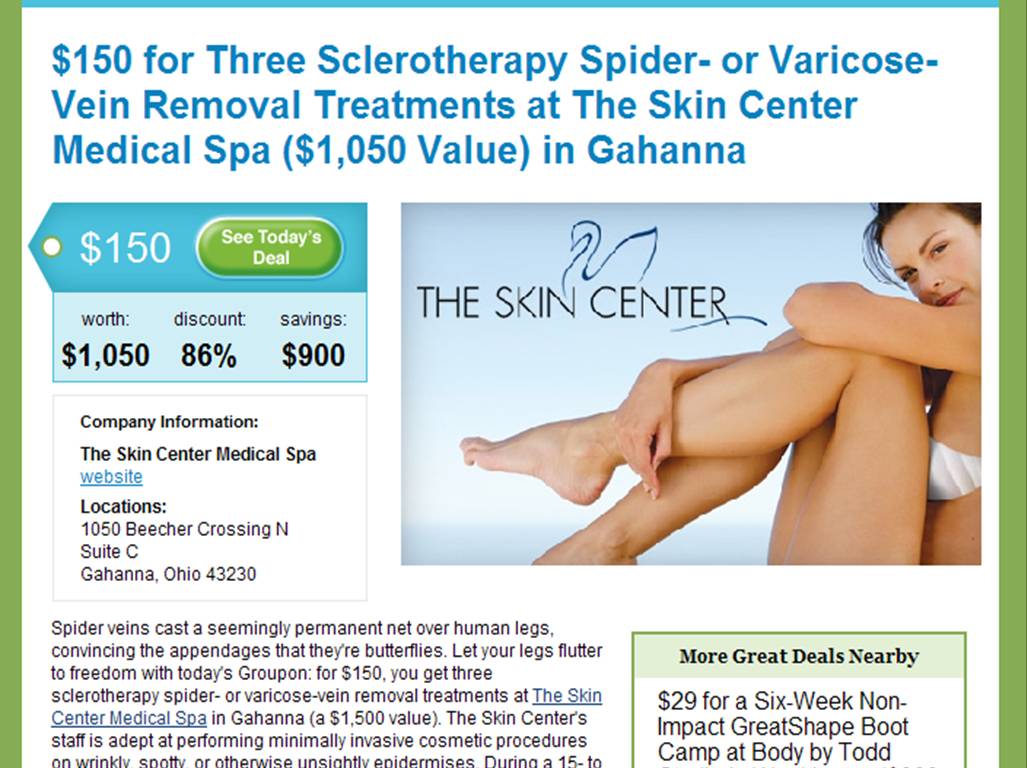 An 86% discount on spider vein removal treatments. That’s a great deal.
