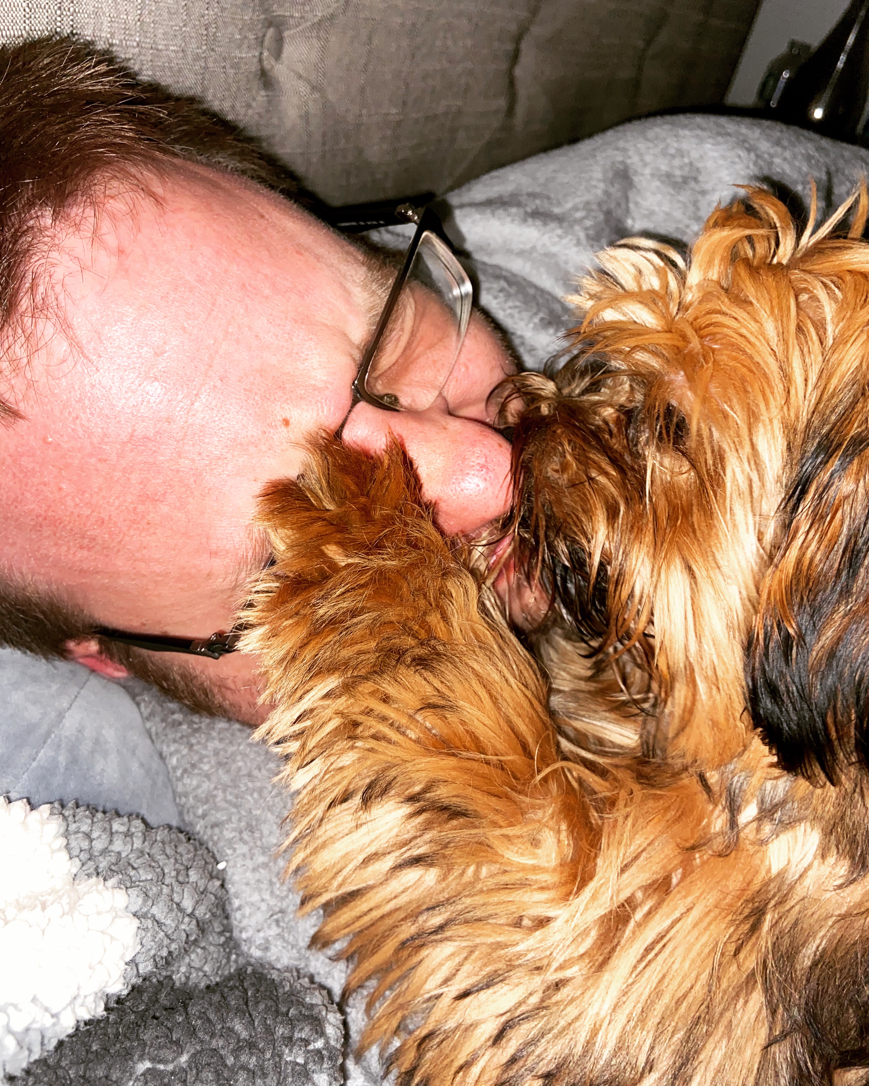 She never met a person whose face she didn’t want to lick. She licks my face multiple times a day. Everyday. Never thought I’d allow it. But now it’s too late to try to stop it.